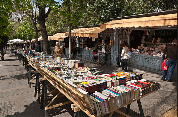 First, I went for a run in the park and looked at the Cuestas de Moyano, a row of book stalls lined up outside the south entrance to Retiro (see photo from of alamy.com). Then, I took an Easter walk down Calle Atocha. (Okay, really, I was going to the grocery store, but I went in a very relaxed, slow-walking way. In the evening, I video-chatted with almost my whole family, always an accomplishment as they are spread out over 3 states and 2 time zones. I appreciated the European daylight savings time, which marks the return of the 10 PM sunset in Spain.